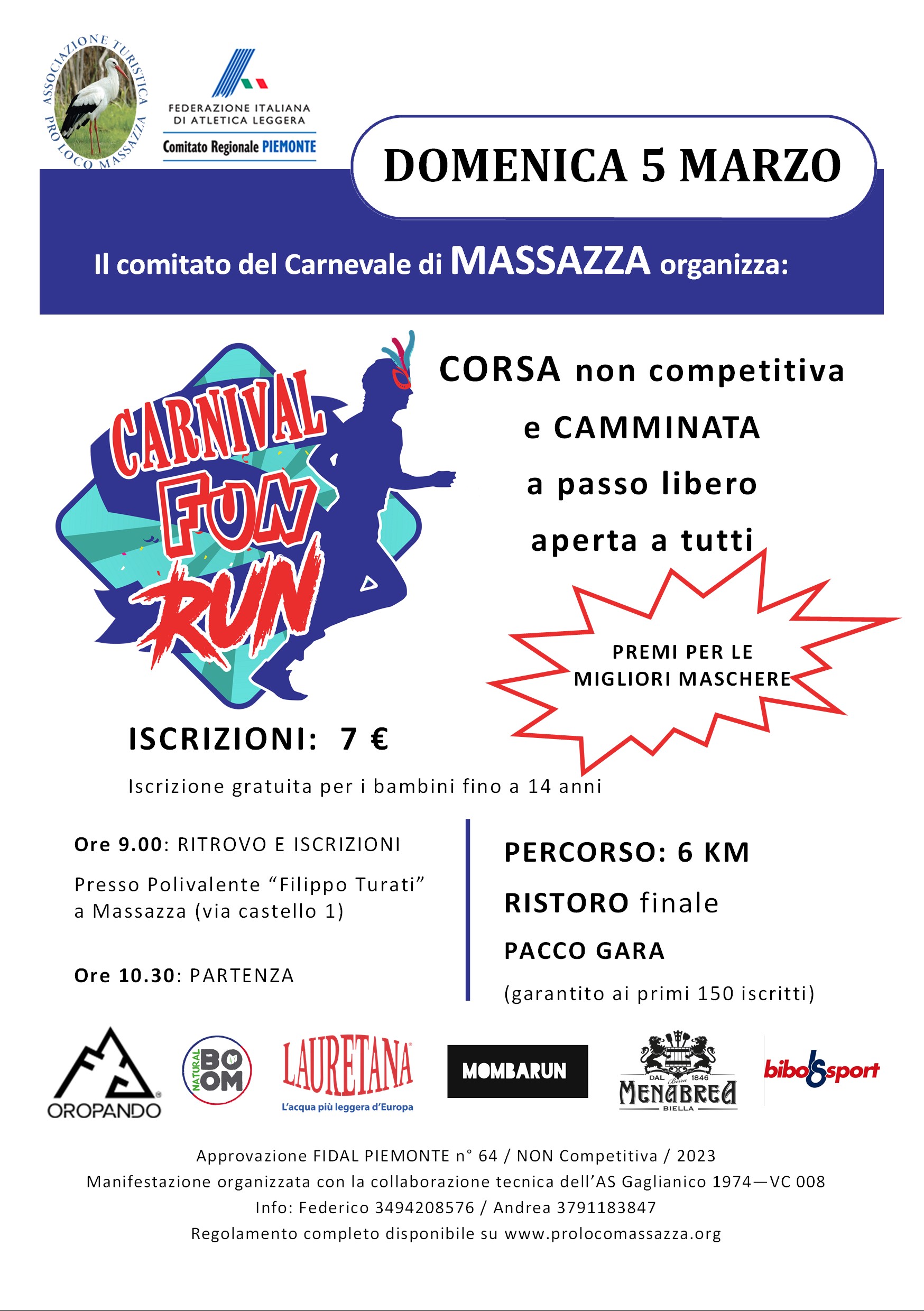 Corsa in Maschera, non competitiva a passo libero, aperta a tutti!